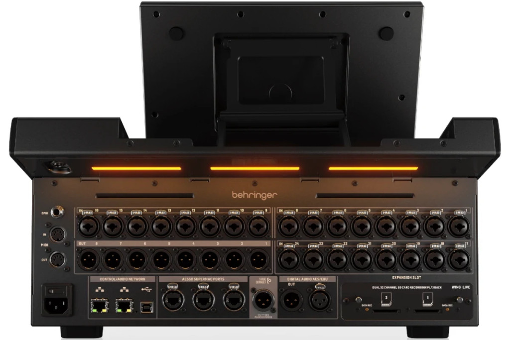 A hátlapi bővítőhely opcionális 64 csatornás audio interfészt és hálózati bővítőkártyákat, pl. Dante, WSG, MADI…
