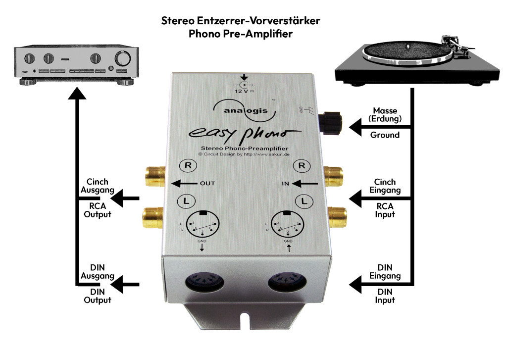 Easy lemezjátszó előerősítő DIN / 5 pólusú bemenettel