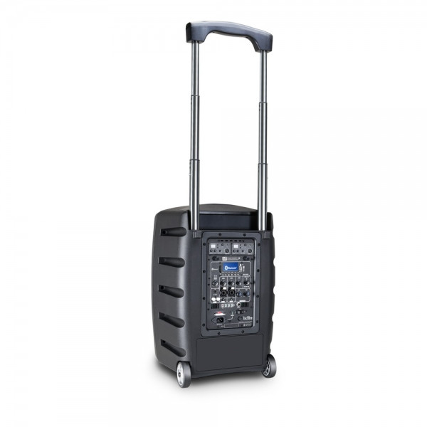 Az LD Systems Roadbuddy beépített kerekeinek és kihúzható hordozófülének köszönhetően könnyen szállítható. A tetején praktikus tárolóhely található a két mikrofonadónak. A műanyagból készült könnyű láda 35 mm-es hangfalállványt is képes fogadni.