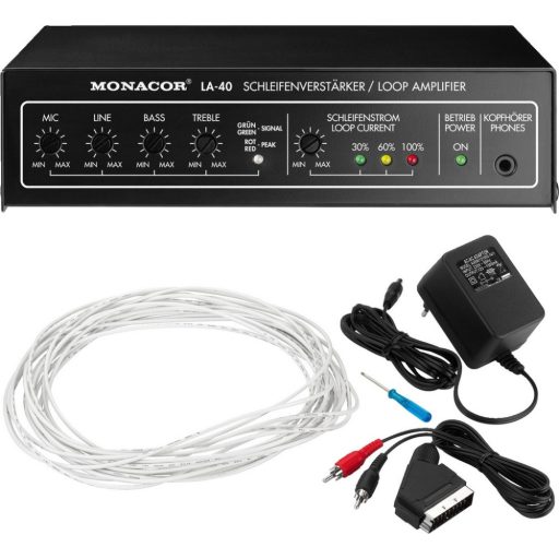 Az LA-40 hurokerősítő egy TV-készülék vagy hangrendszer és/vagy egy mikofon audió jelét a földre, a falra vagy a plafonra fektetett indukciós hurokba vezeti, minek következtében mágneses tér keletkezik a hurok belsejében, ami feszültséget indukál a hallókészülék T-coil tekercsében ill. az indukciós vevőkészülékben, és végül visszalakul hangjellé.