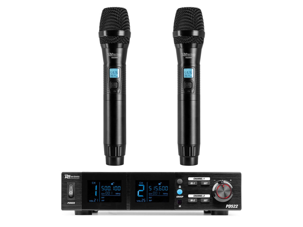 – 2 kézi mikrofon dinamikus LCD kijelzővel és némító funkcióval