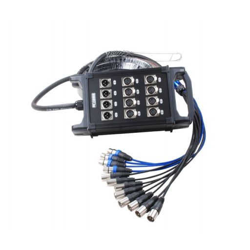 A kiváló minőségű, hajlékony csoportkábel egy tömszelencén keresztül fixen kapcsolódik a dobozhoz, másik végén XLR csatlakozóval szerelt legyezőben végződik. A legyező kifejtési pontját fém burkolat, a legyező minden szálát kábelvédő harisnya, a csatlakozókat acél tehermentesítő védi a sérülésektől. A csatornák azonosítását a kábel mindkét végen elhelyezett számozás segíti.