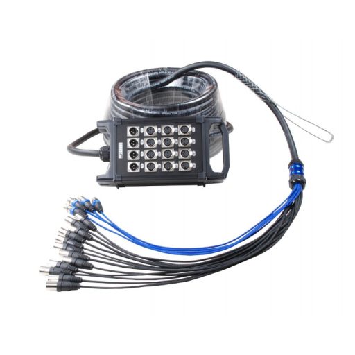 A kiváló minőségű, hajlékony csoportkábel egy tömszelencén keresztül fixen kapcsolódik a dobozhoz, másik végén XLR csatlakozóval szerelt legyezőben végződik. A legyező kifejtési pontját fém burkolat, a legyező minden szálát kábelvédő harisnya, a csatlakozókat acél tehermentesítő védi a sérülésektől. A csatornák azonosítását a kábel mindkét végen elhelyezett számozás segíti.