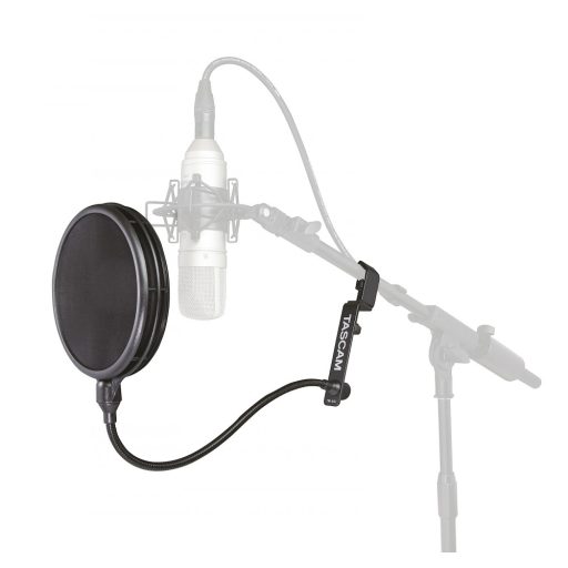 Kétrétegű, távtartóval és flexibilis karral szerelt pop-filter. Nyakhossz: 351 mm.