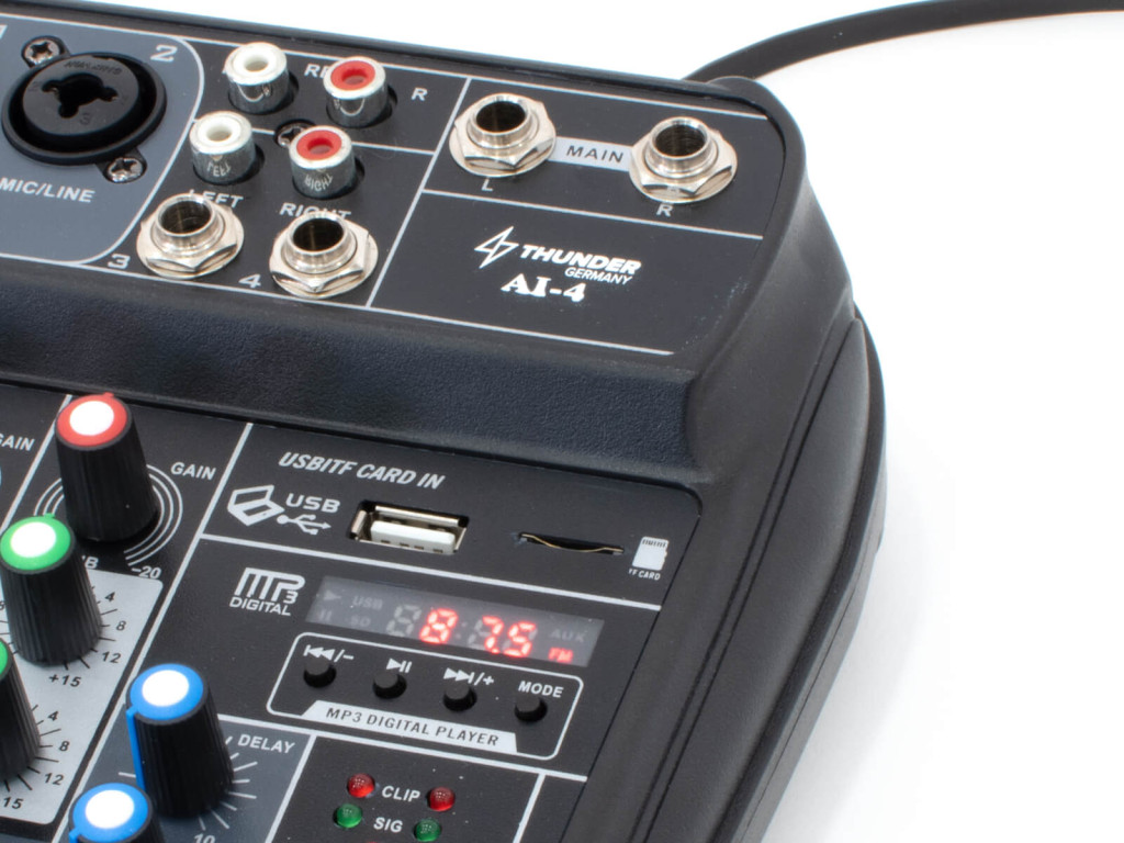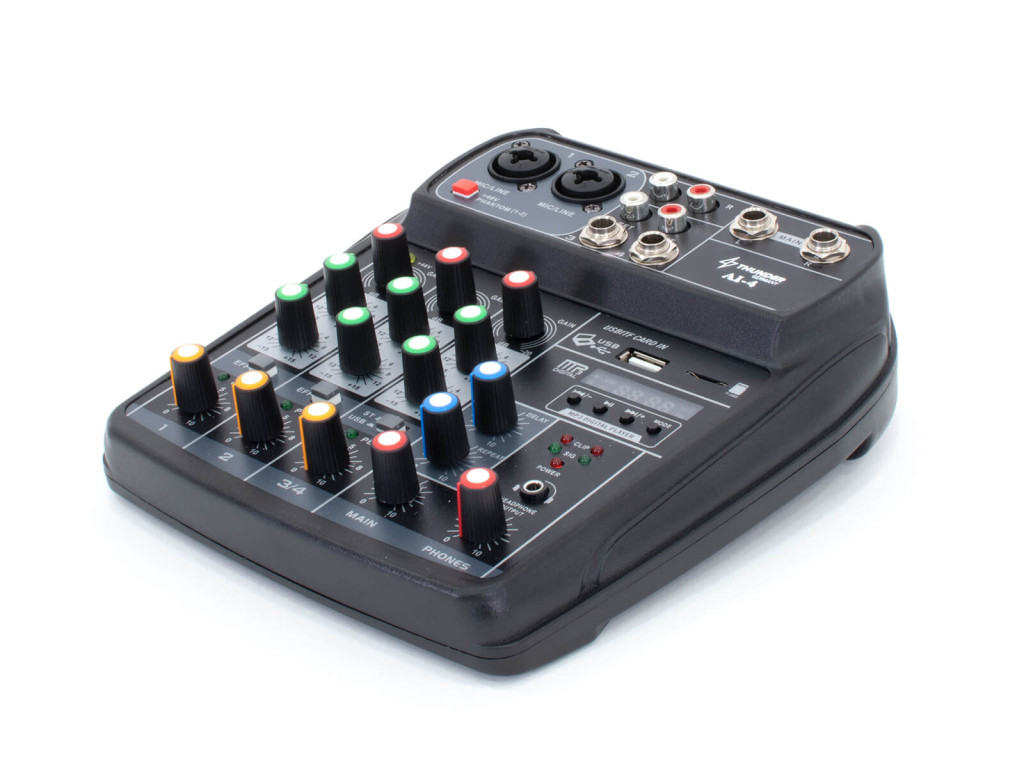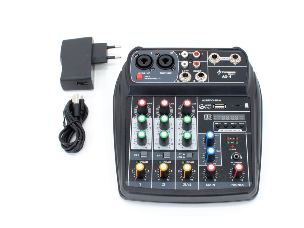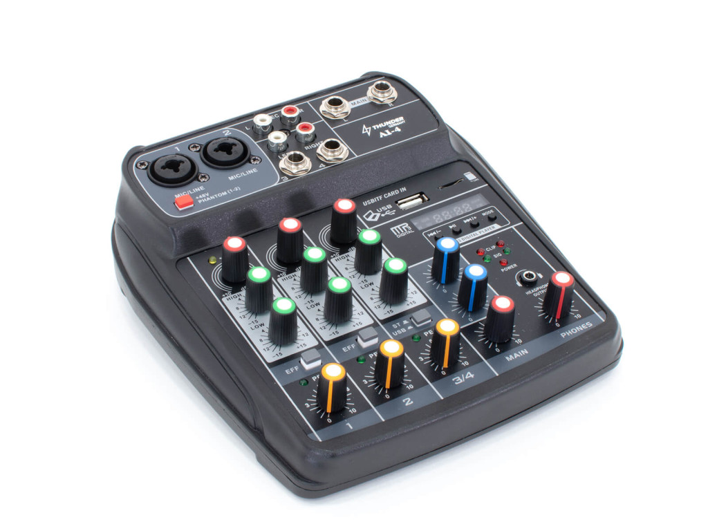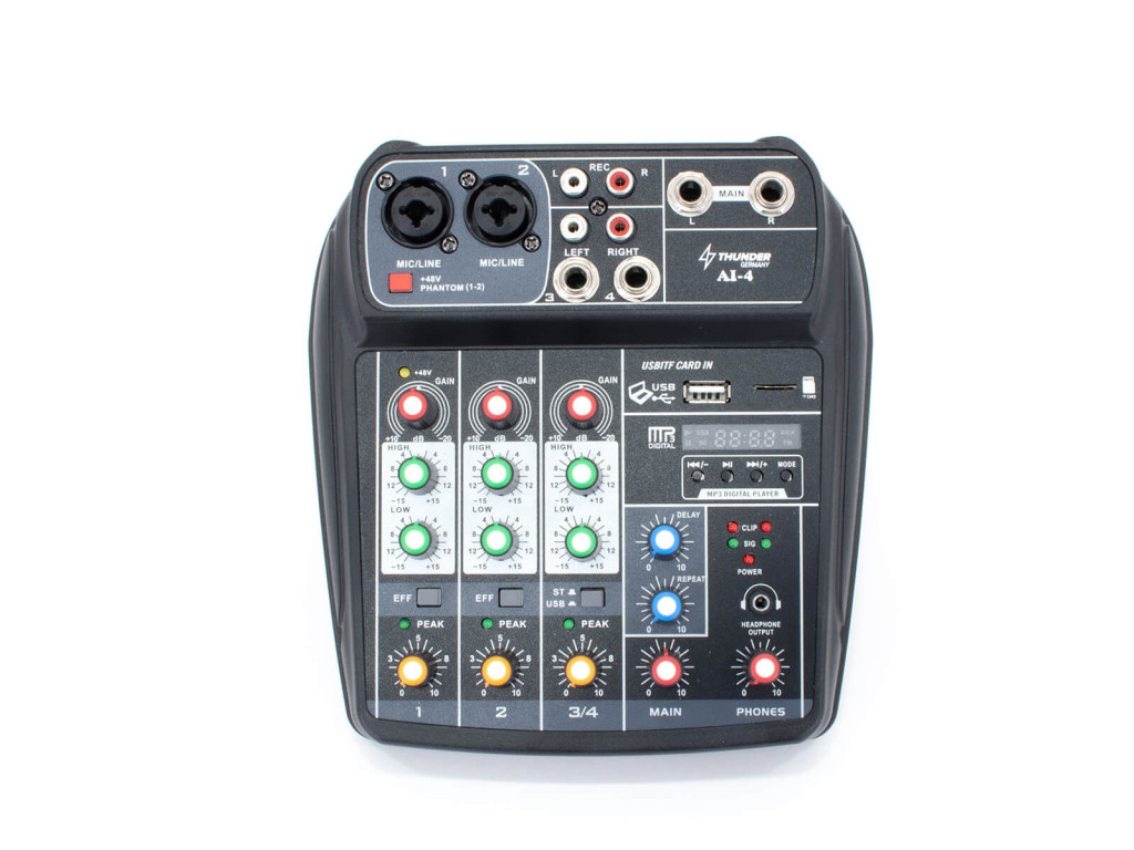 – 4 csatornás analóg keverő (2x monó, 1x sztereó bemenet)