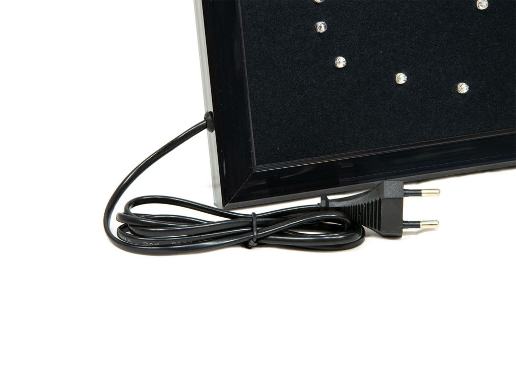A beépített tápkábel lehetővé teszi, hogy a készüléket közvetlenül egy szabványos 230V-os hálózati aljzatba csatlakoztassa, így nincs szükség külső adapterre vagy átalakítóra. A felszerelést a tábla tetején található két rögzítőfül segíti, amelyekkel a tábla szögre akasztható vagy damillal felfüggeszthető. A termék beltéri vagy fedett kültéri használatra lett kialakítva, így alkalmas kirakatokba, bejáratok fölé vagy bármilyen, közvetlen csapadéktól védett helyre.