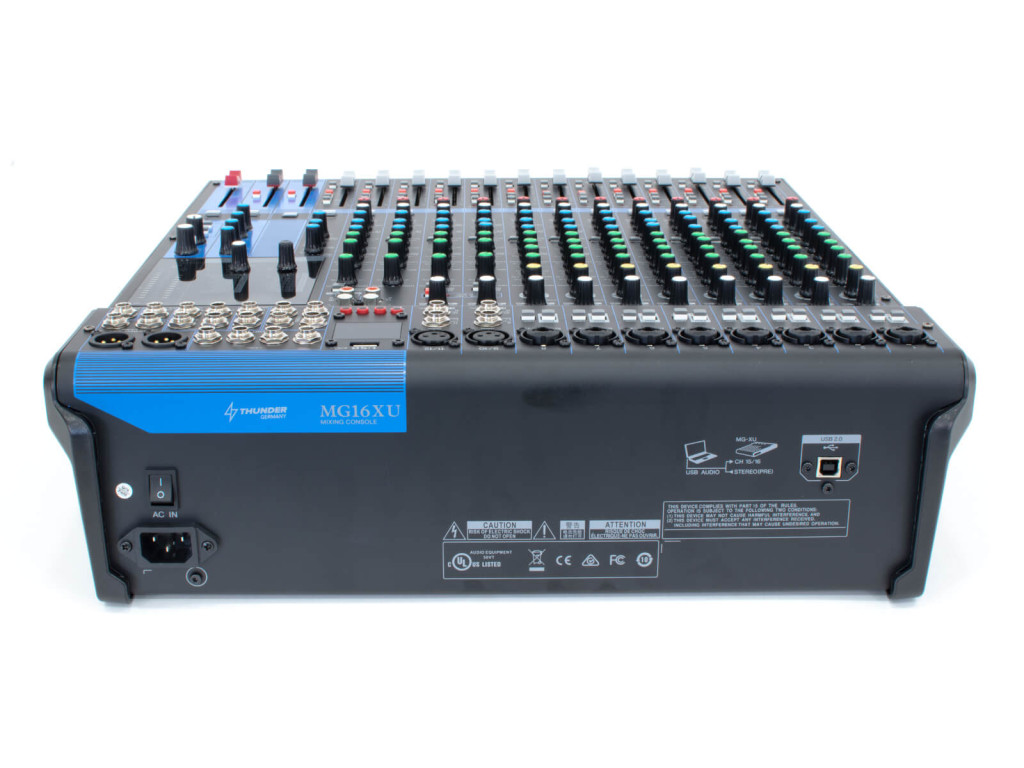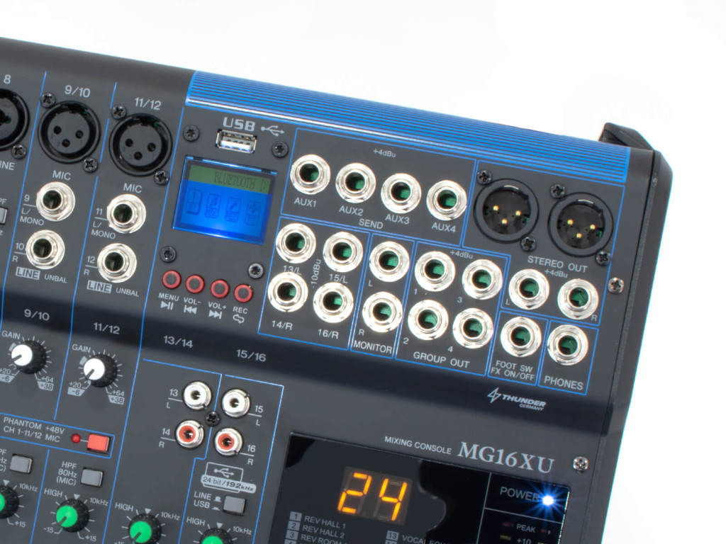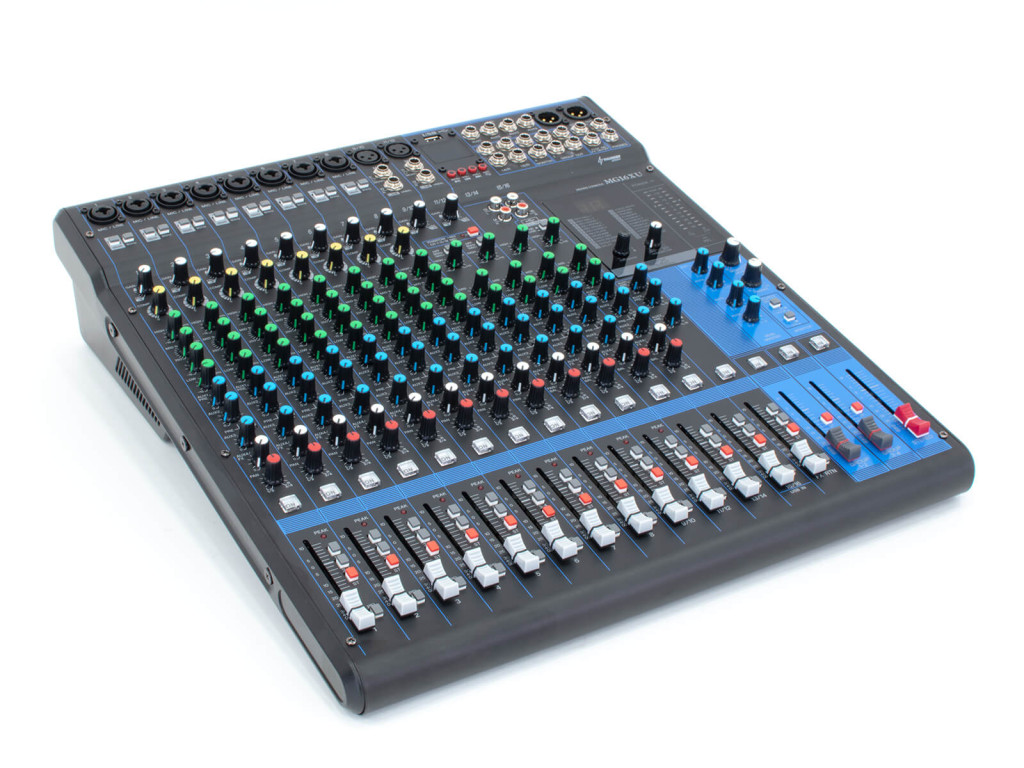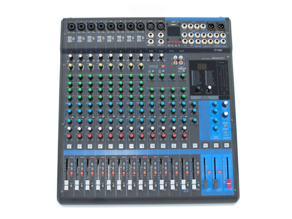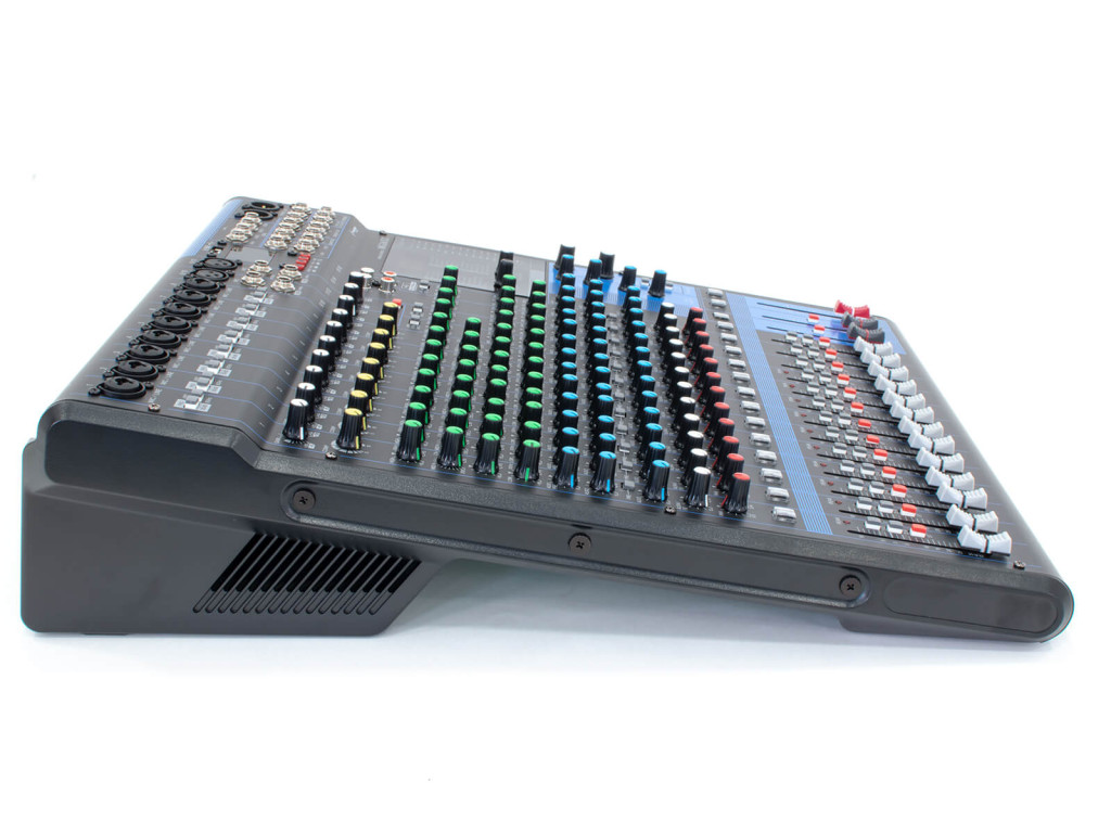 – Monó csatorna szabályzók: gain, vonalszint kapcsoló (PAD), mélyvágó szűrő (HPF), kompresszor (1-8 csatornán), effekt, hangerő, EQ, Pre-Post kapcsoló, Group