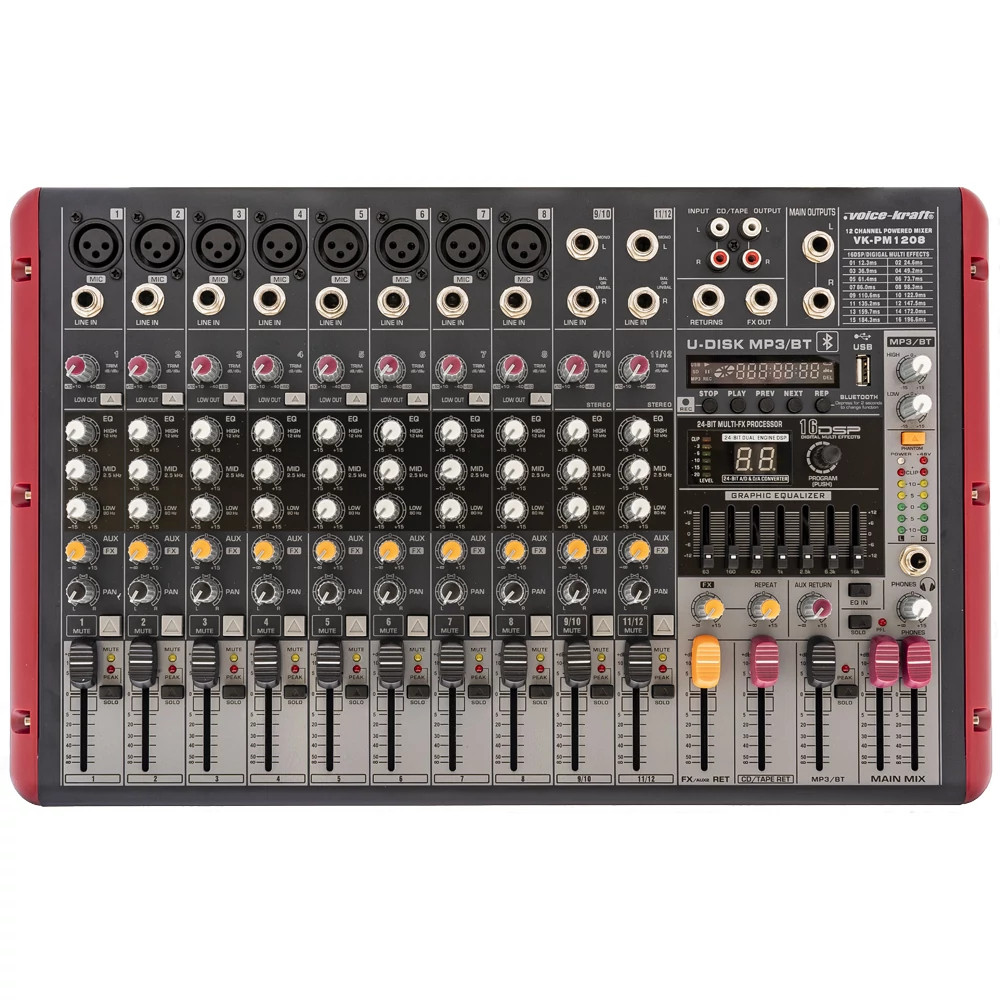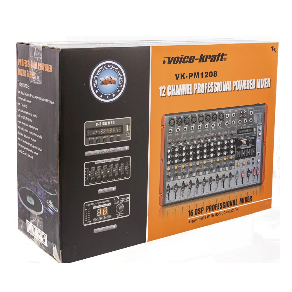 Voice-Kraft VK-PM1208 Powermixer, 2x250W/4Ohm, MP3 lejátszó