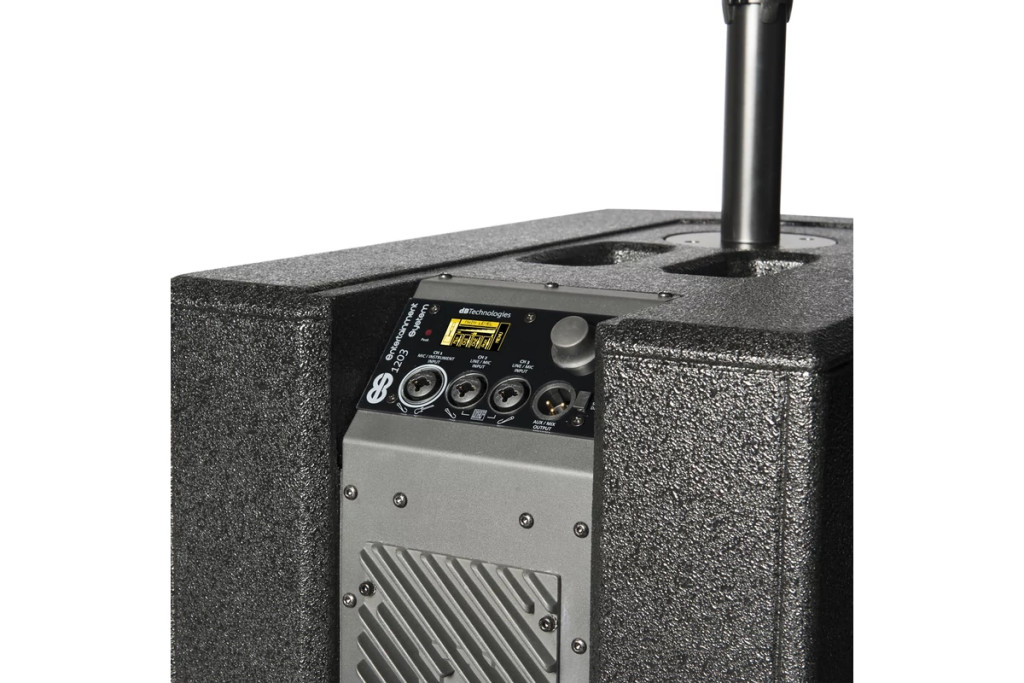 Az ES1203 egy 3 erősítésű sztereó hangrendszer, amely 2 passzív fa tetőből és egy aktív fa mélynyomóból áll, amelyek 2 db 12 hüvelykes hangszóróval vannak felszerelve. A mélynyomóban egy legújabb generációs Digipro G4® 2400 W-os csúcsteljesítményű erősítő található. Egy nagy teljesítményű DSP (amelyet a mélynyomó tetején található intuitív felhasználói felület vezérel) kezeli az 5 csatornás beépített digitális keverő összes funkcióját, valamint a rendszer konfigurációját.